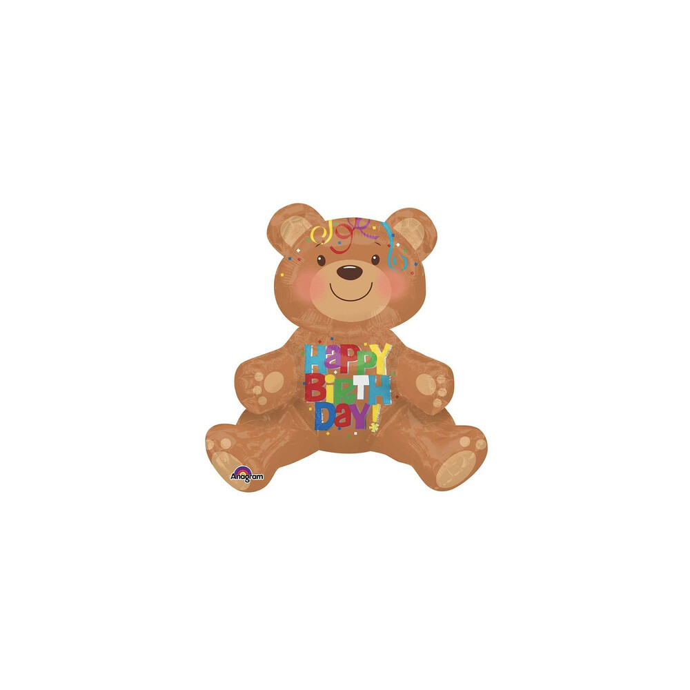 미국 아나그램 사의 벌스데이 테디 호일 풍선입니다. HAPPY BIRTHDAY 문구가 프린팅 되어 있는