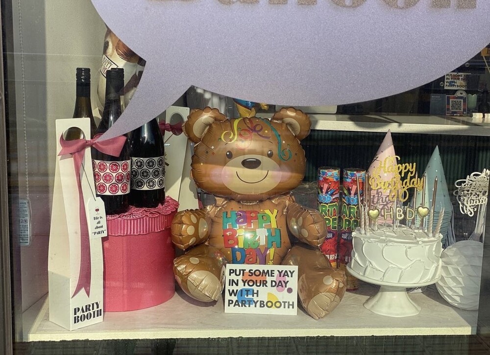 생일 축하 풍선입니다. 몸통과 다리에 공기를 주입해 끼워주면 곰인형처럼 앉혀 놓을 수 있어요.