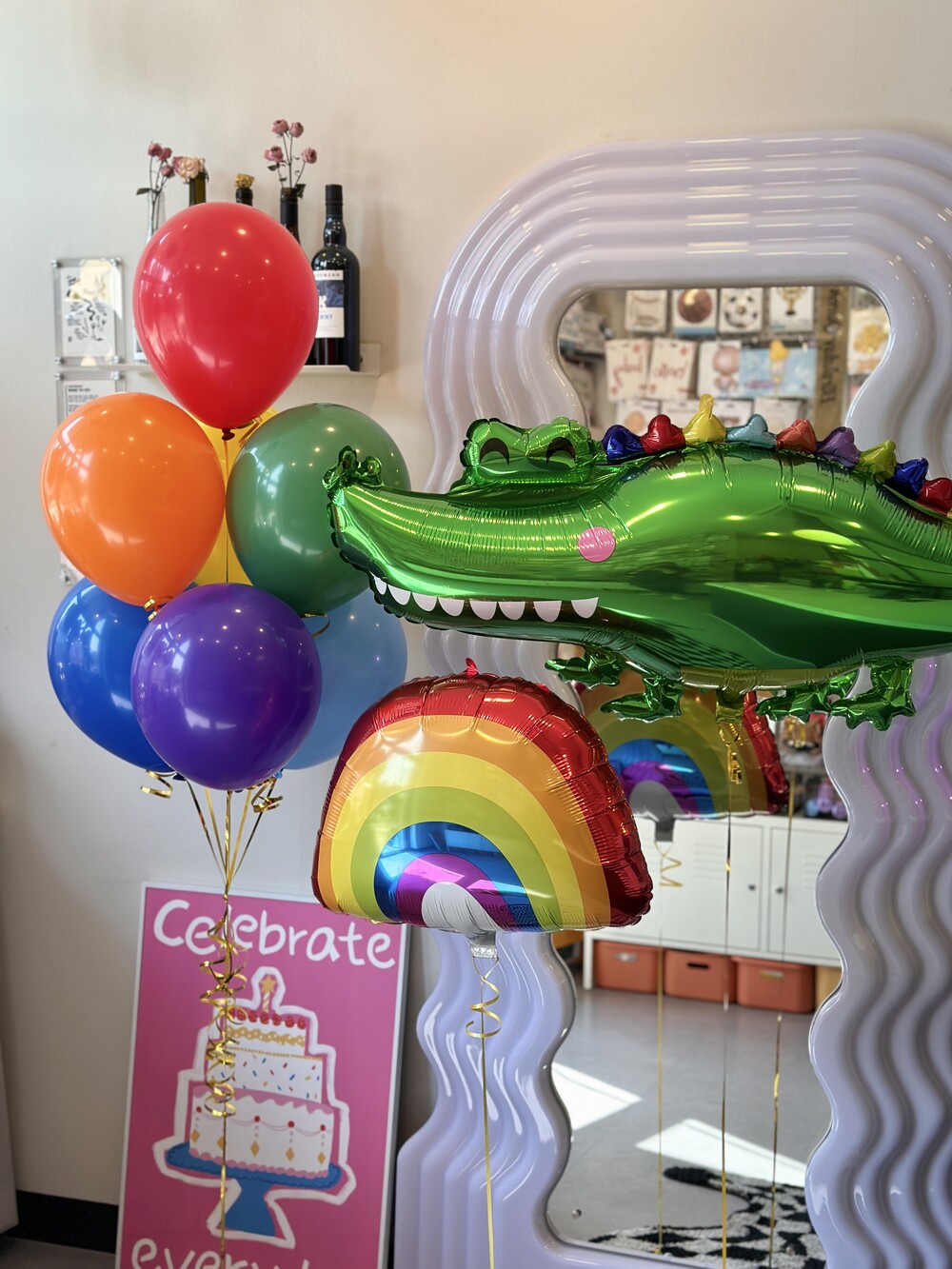 무지개 포인트의 알록달록한 디자인이 깜찍한 악어 풍선으로 파티를 장식해보세요.