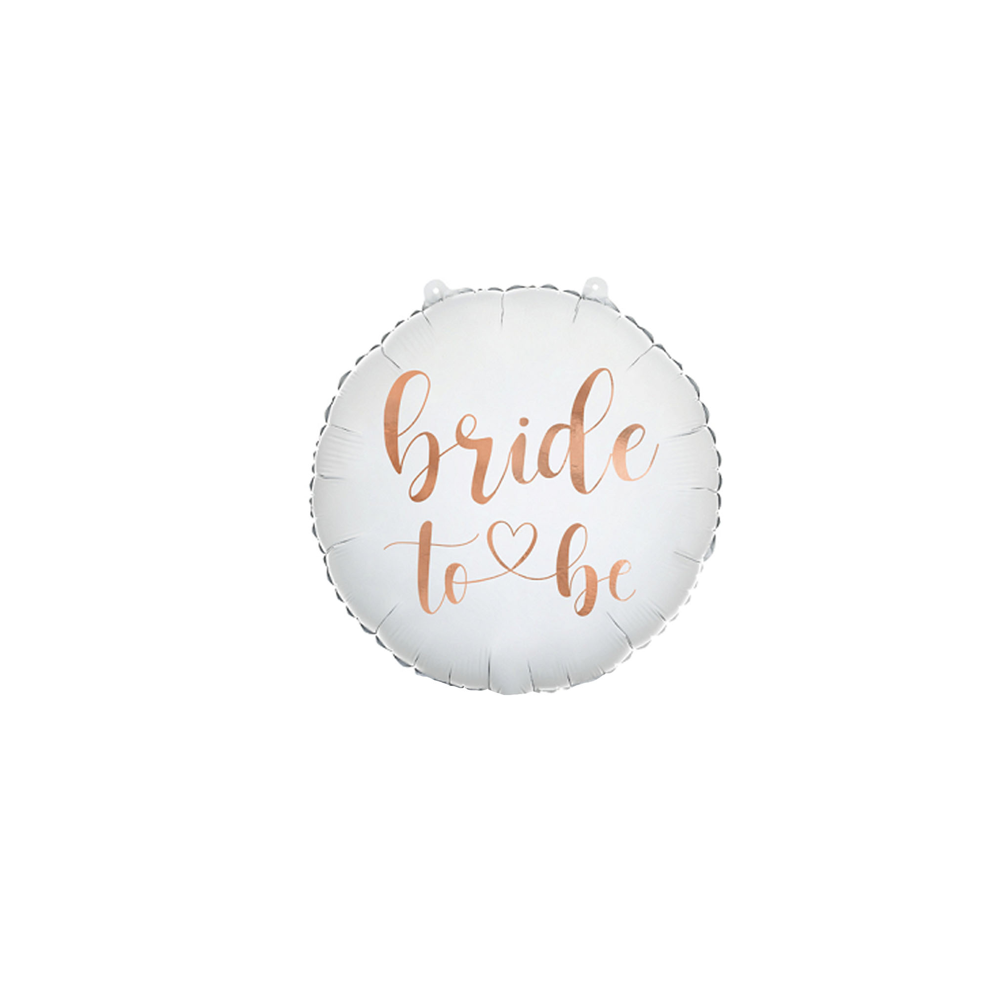 매트한 질감의 화이트 라운드 호일풍선에 로즈골드 컬러 bride to be 메세지가 써져 있는 러블리한 풍선이에요.