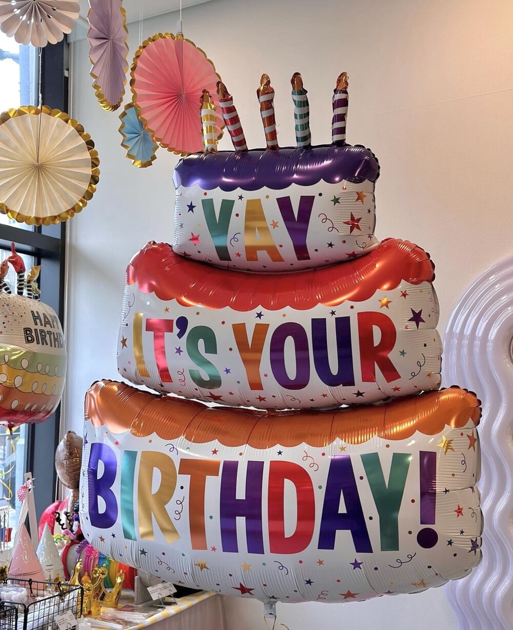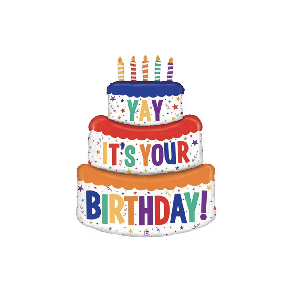 이탈리아에서 제작된 그라보 사의 YAY 초대형 생일케이크 호일 풍선입니다.