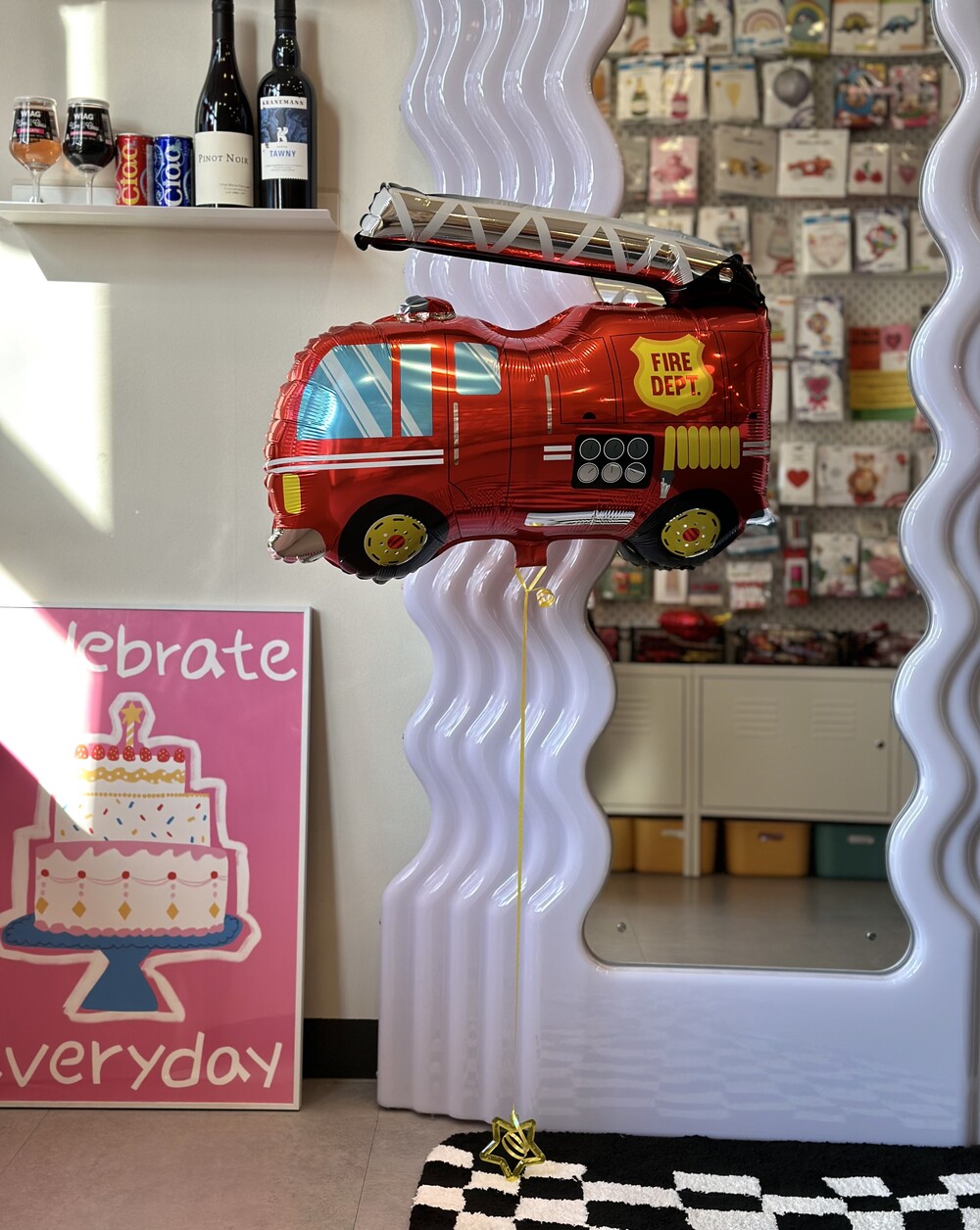 사다리까지 공기가 주입되는 멋진 디자인의 소방차 호일 풍선입니다.