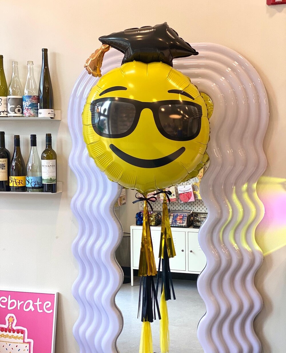 이탈리아에서 제작된 그라보 사의 졸업 이모지 스마일 호일 풍선입니다.