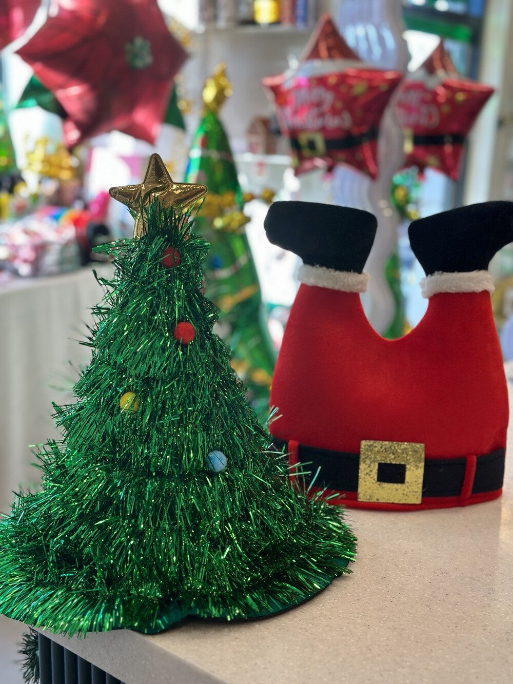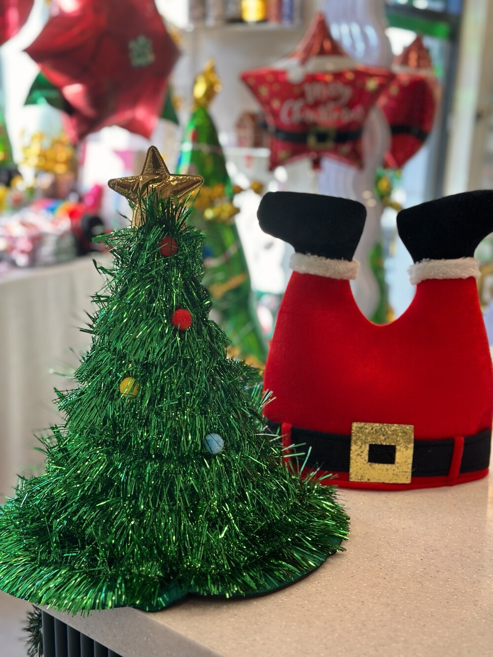 굴뚝으로 들어가는 산타클로스의 다리모양으로 디자인된 깜찍한 파티 모자!