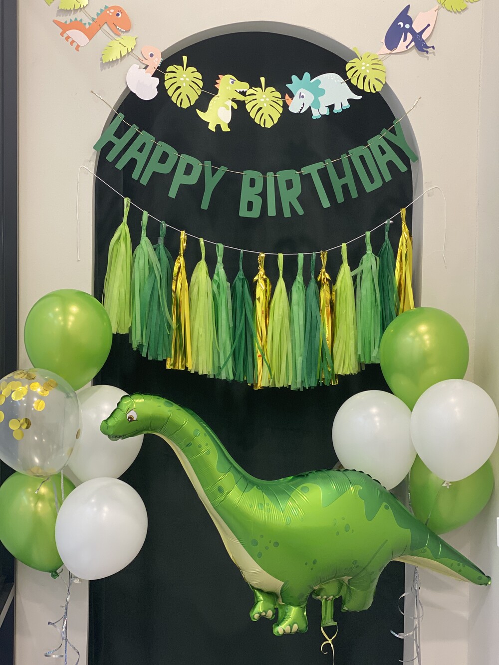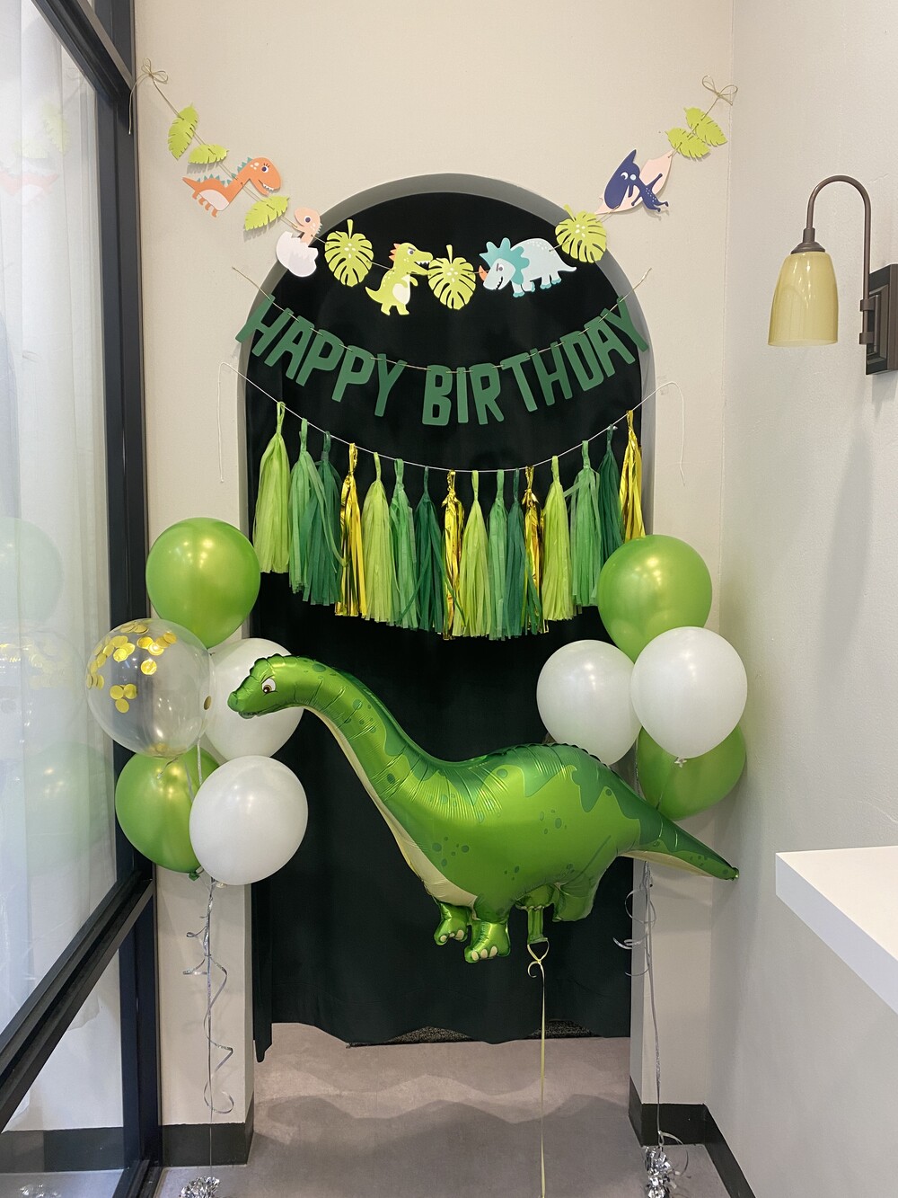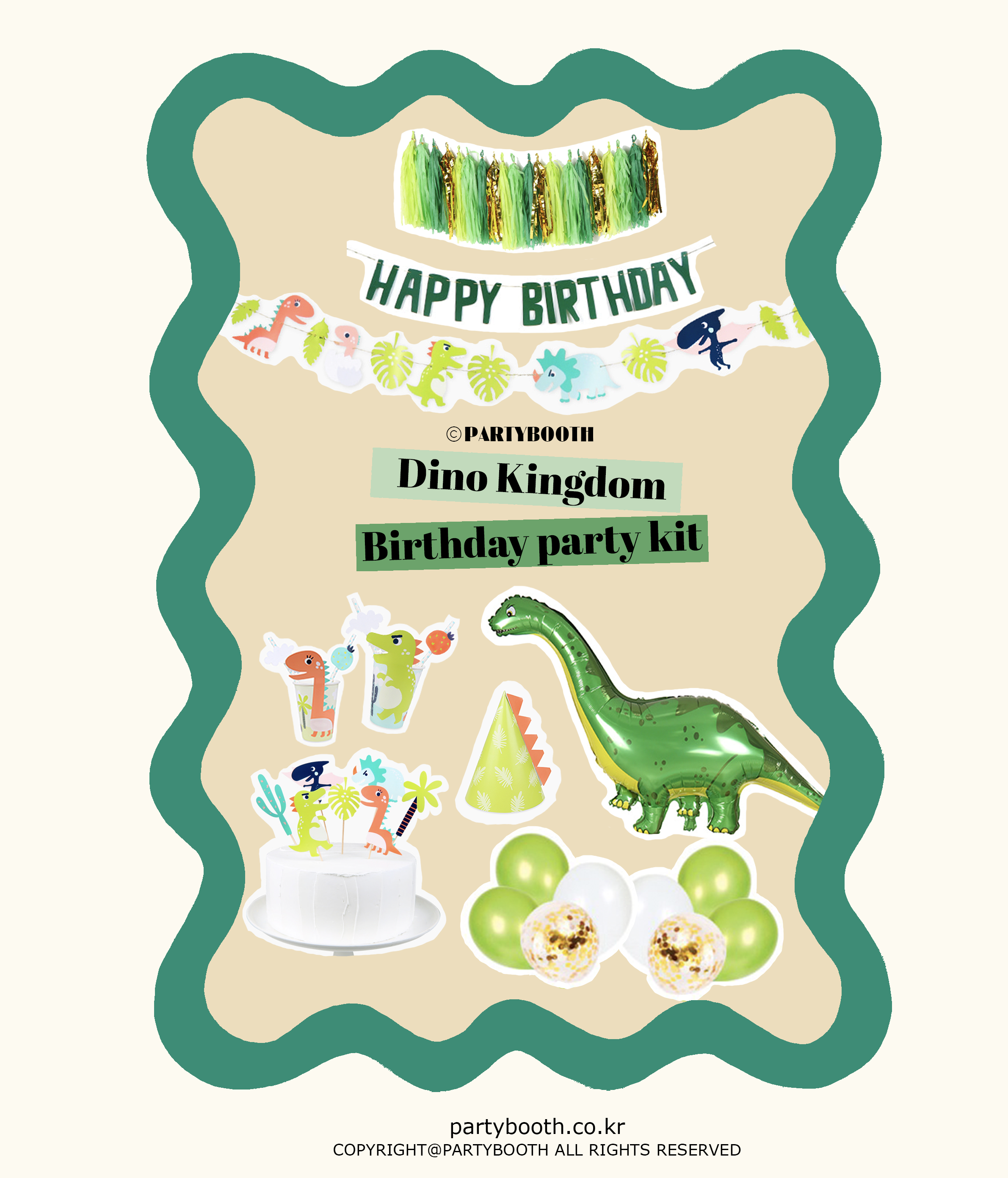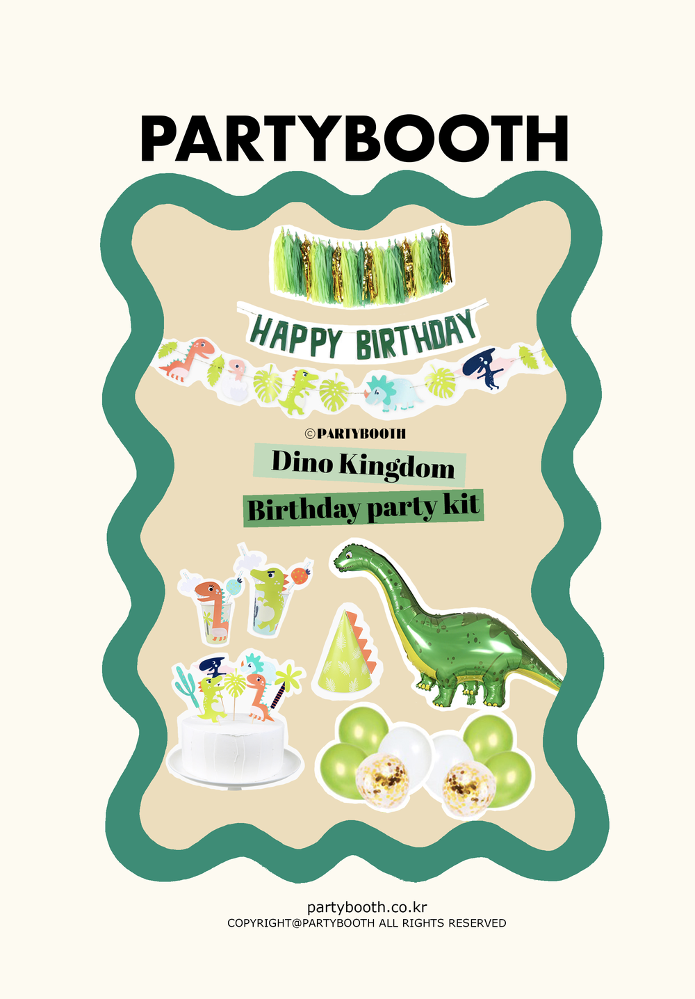 풍선부터 가랜드, 소품까지 공룡이 가득한 DIY 파티부스 공룡 왕국 생일파티 키트입니다.