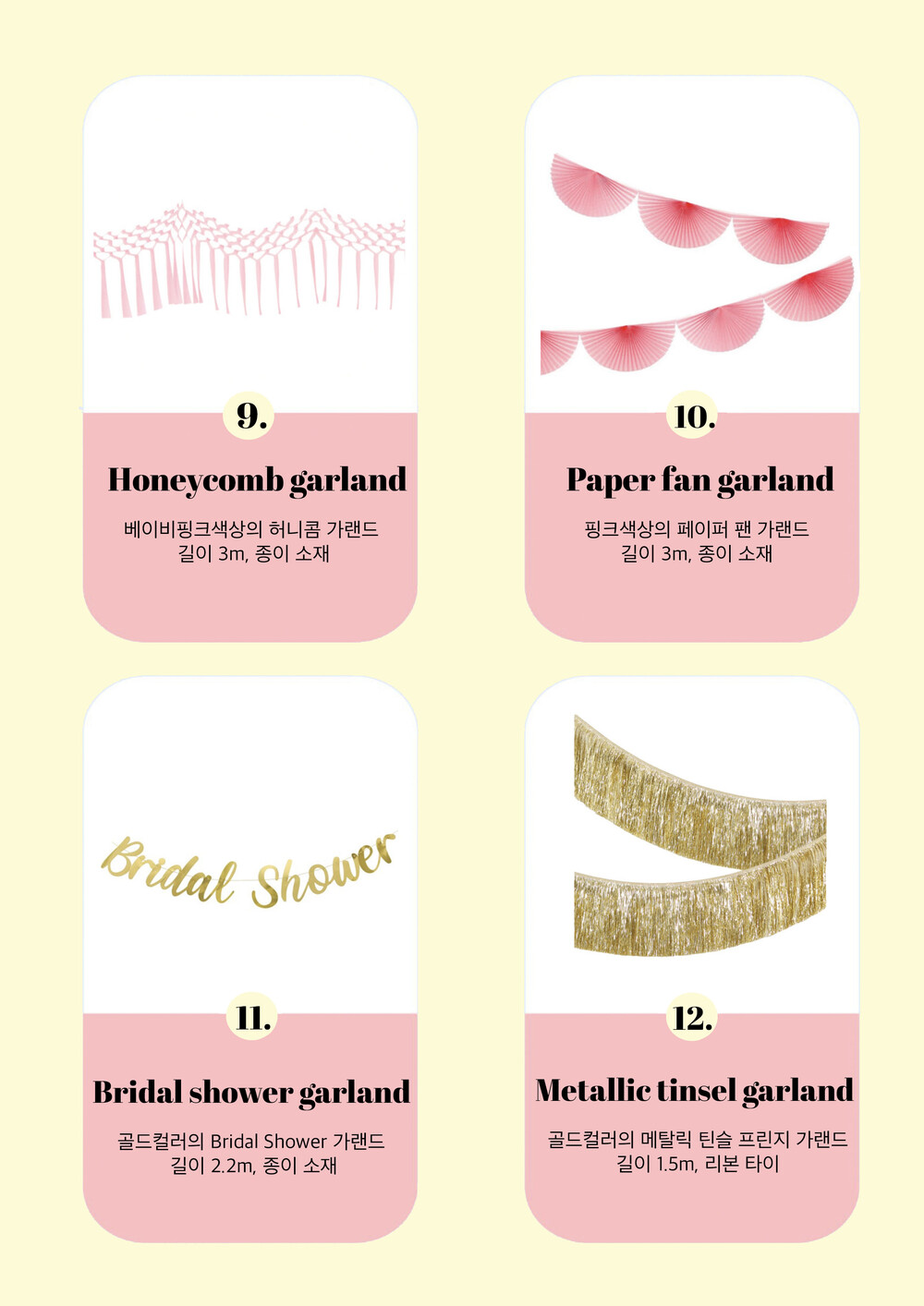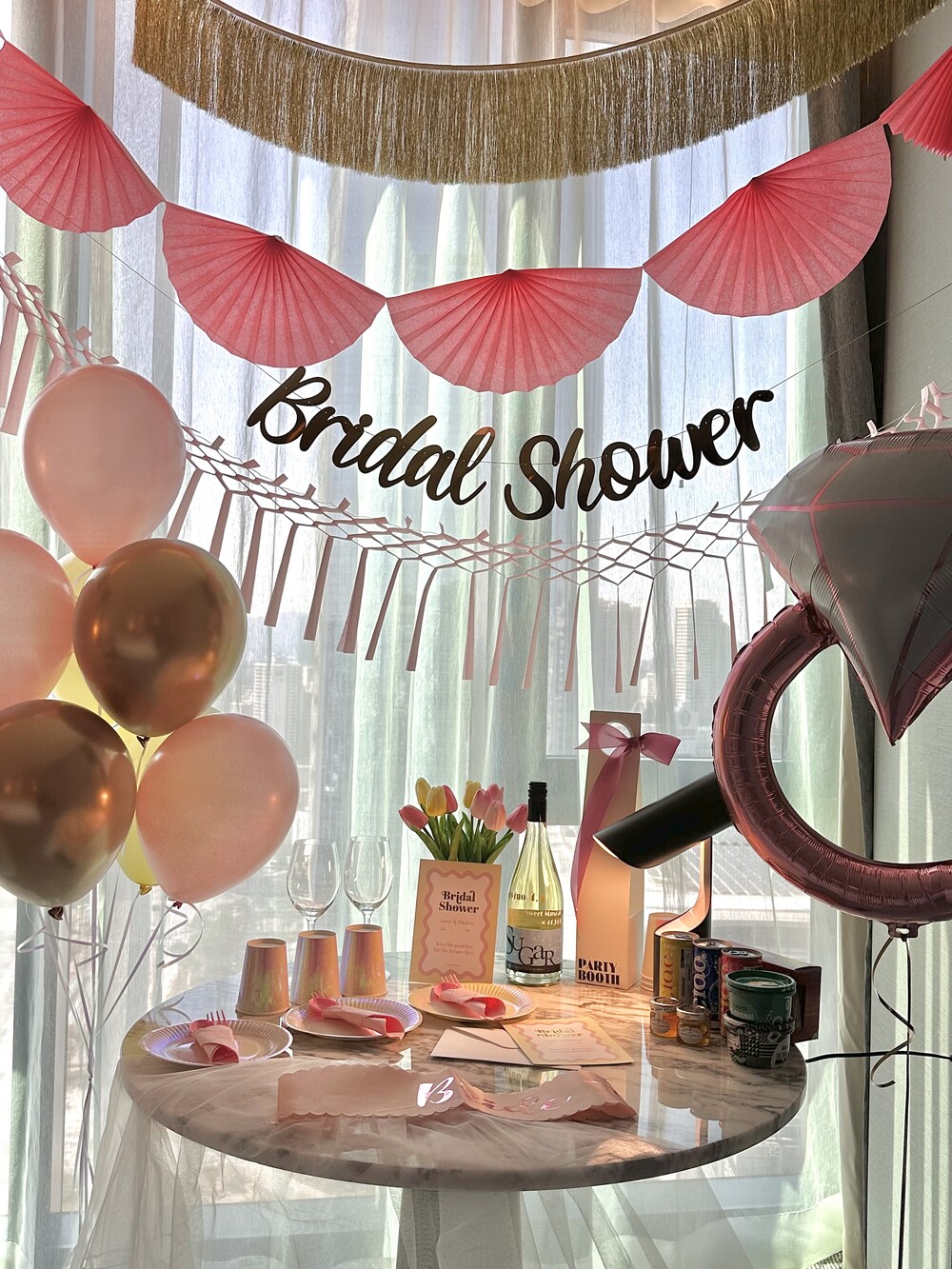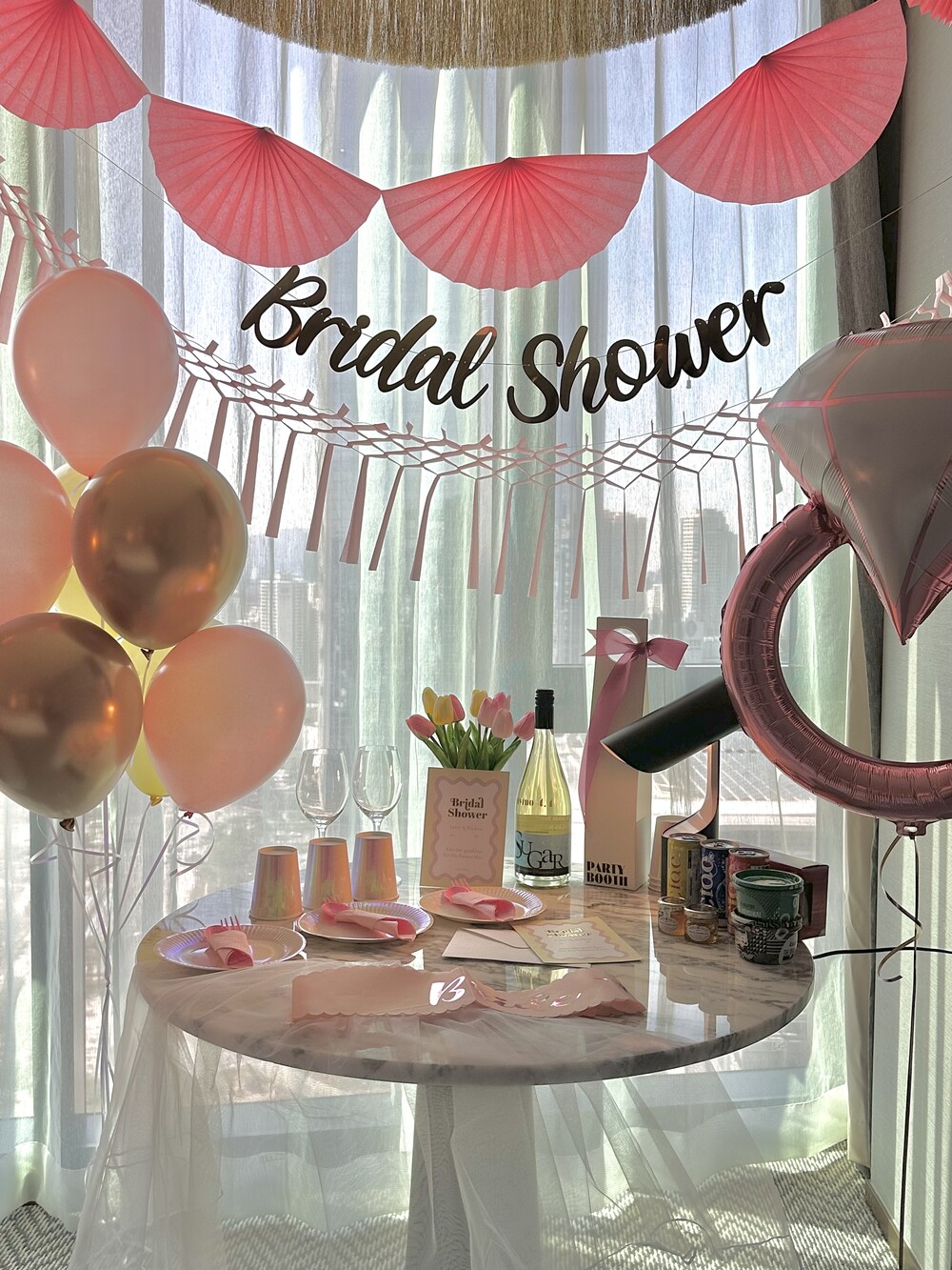 풍선부터 가랜드, 테이블 웨어, 면사포 어깨띠까지! 브라이덜 샤워 파티에 필요한 아이템들로 구성된