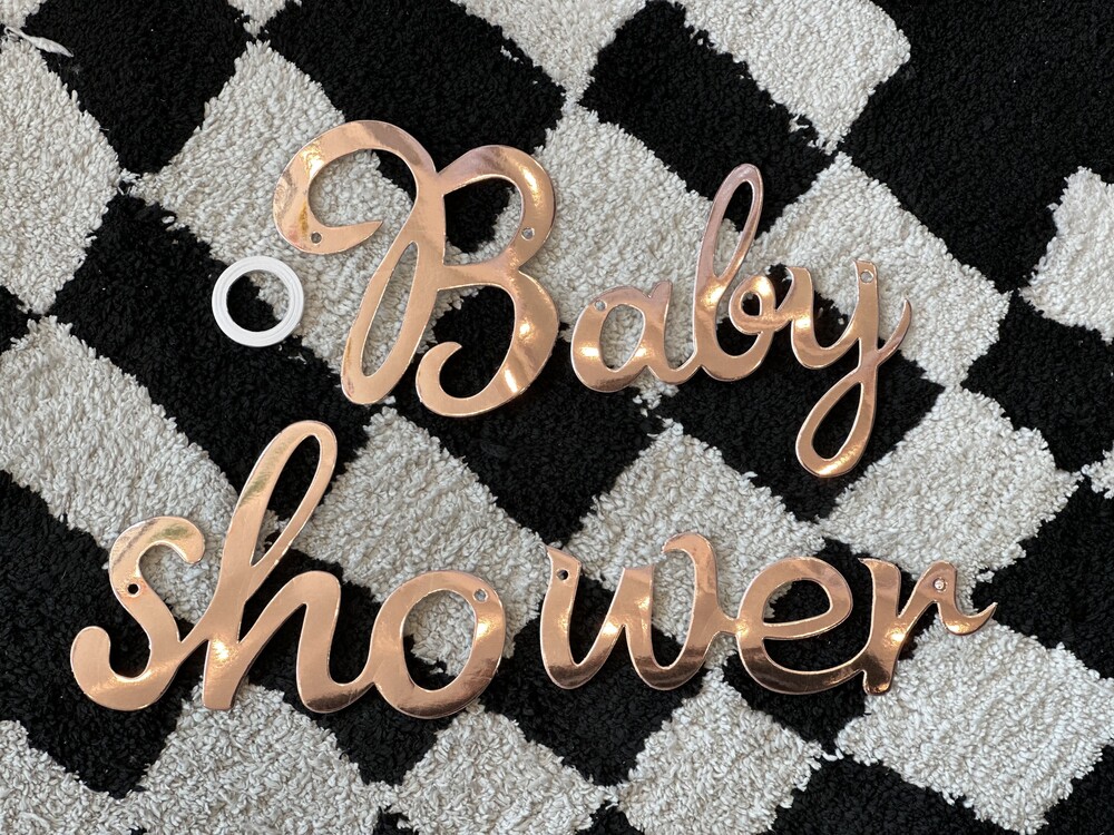 베이비샤워 레터 가랜드입니다. 동봉된 가랜드 끈에 글자를 끼워 완성해주세요.