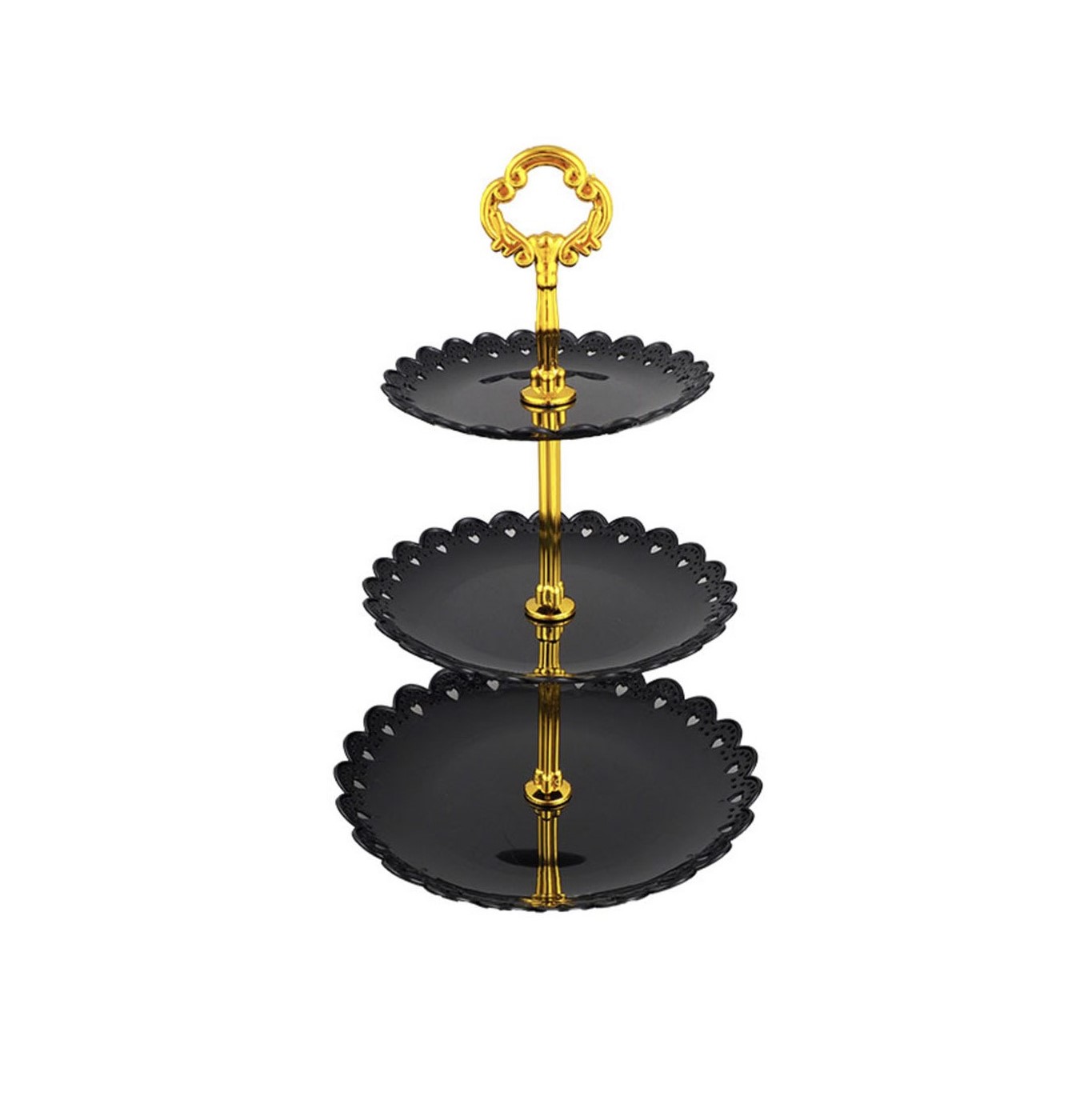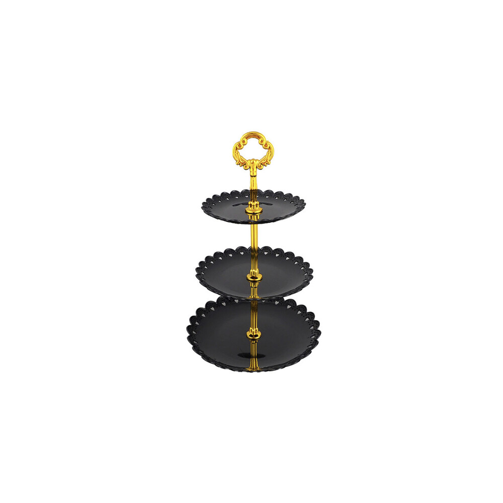 블랙 & 골드 색상으로 만들어진 초콜릿과 사탕, 디저트를 올려 파티를 장식하는 3단 파티 트레이입니다.