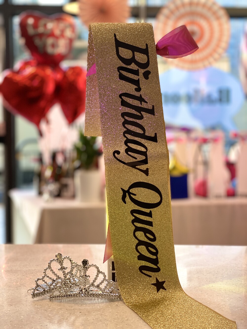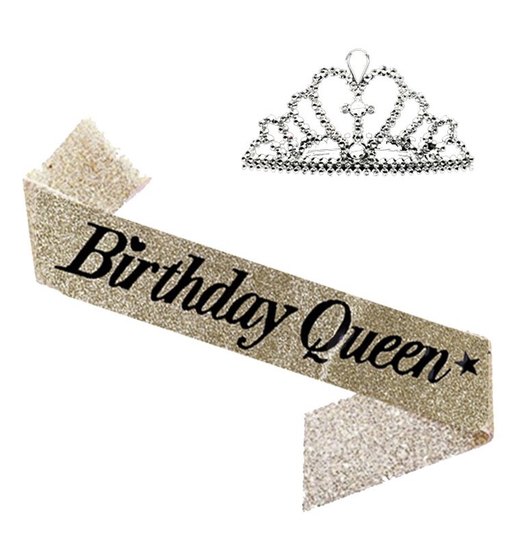 글리터 펄감이 화려한 Birthday Queen 어깨띠입니다.