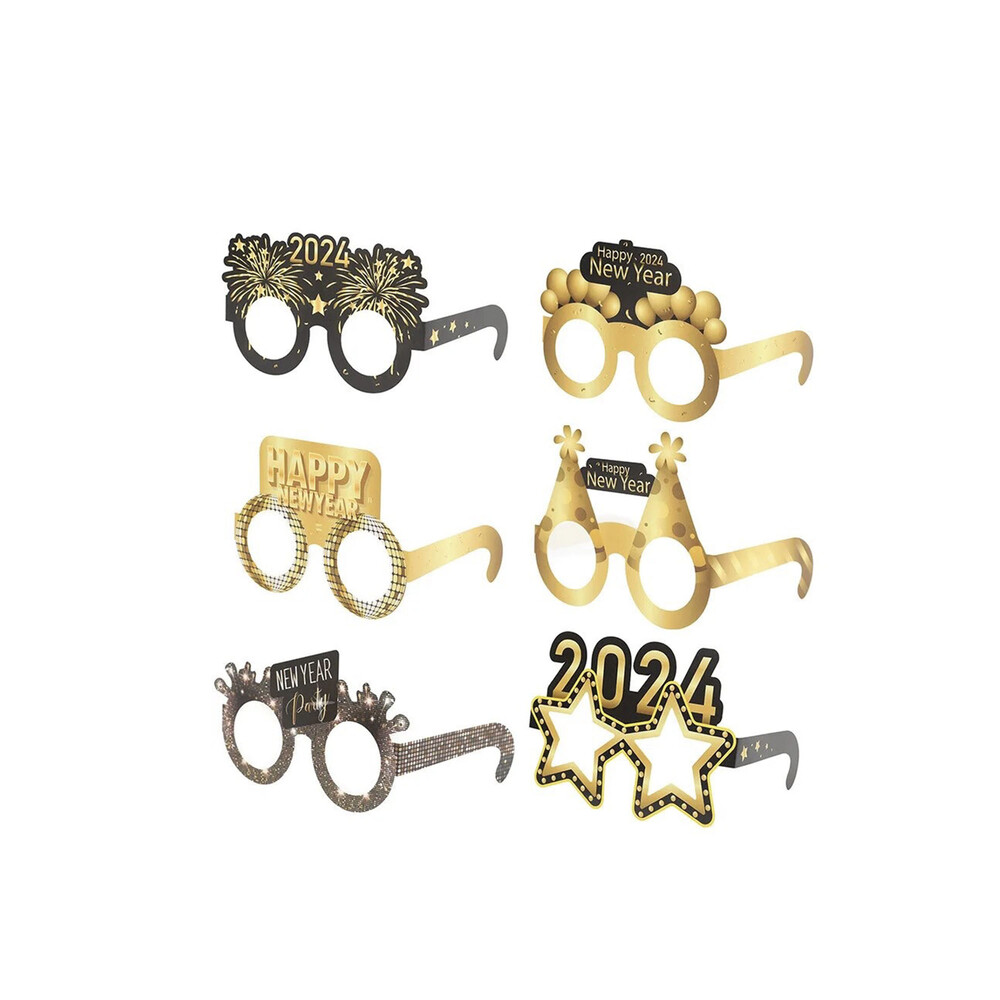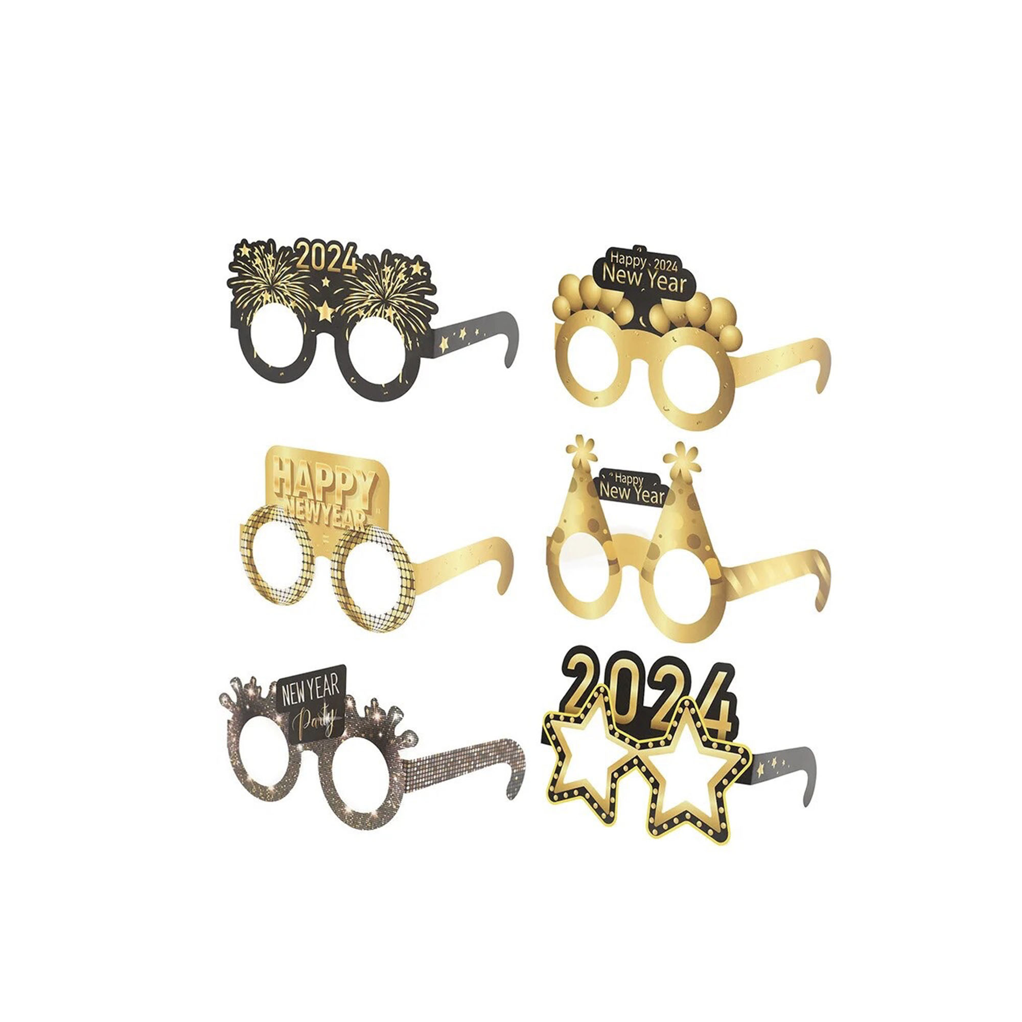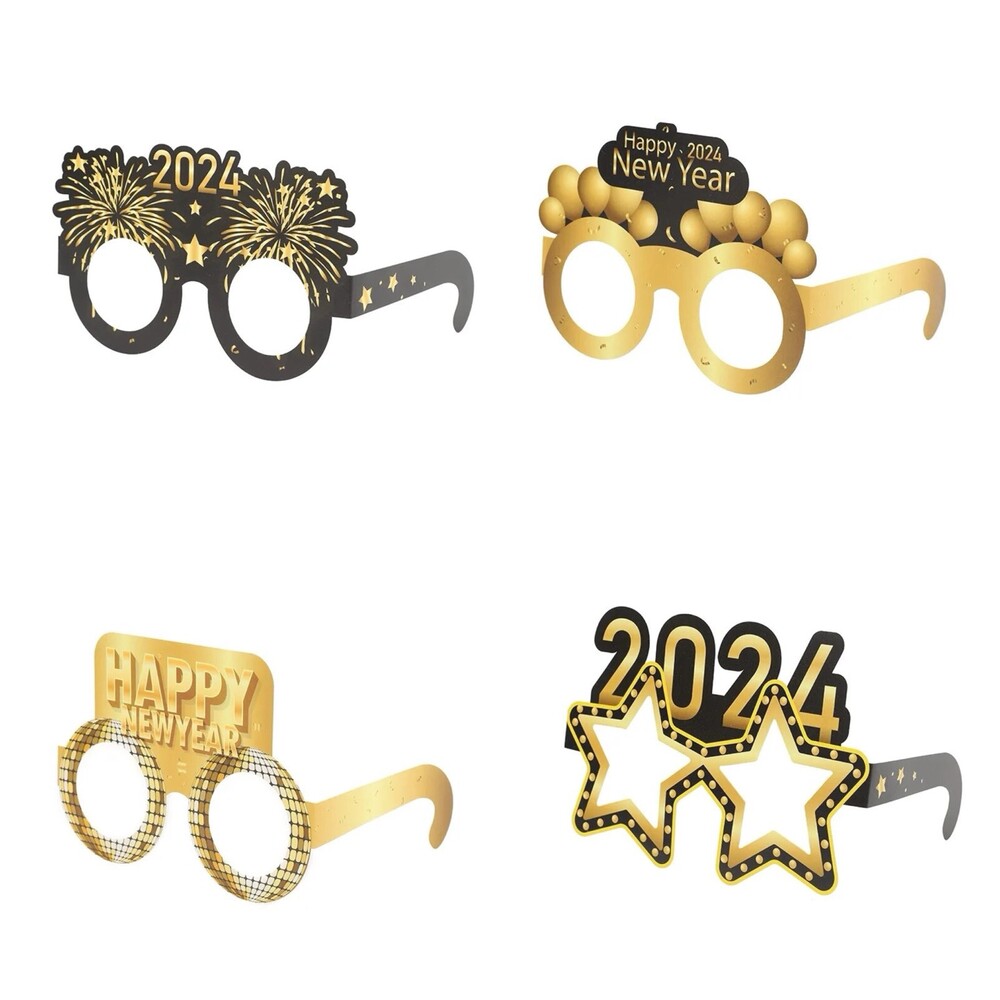 2024년 새 시작을 축하하는 다양한 디자인의 종이 안경 세트입니다.