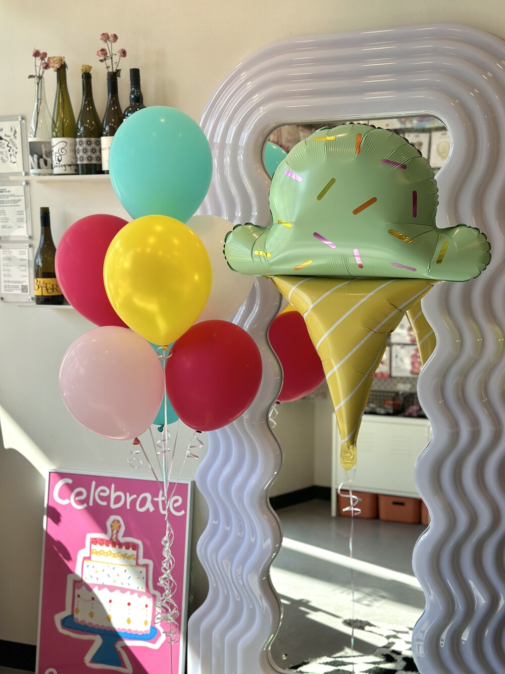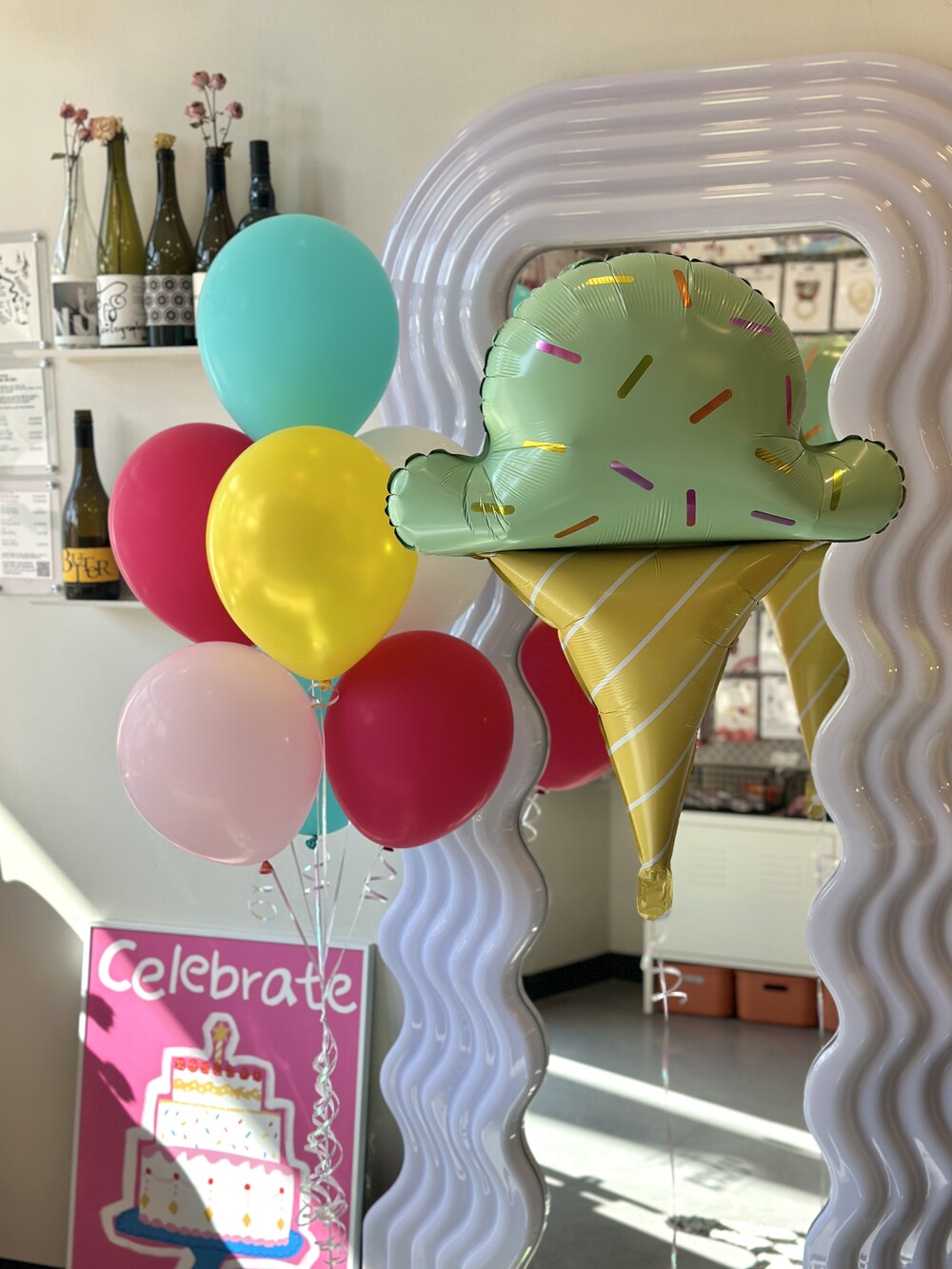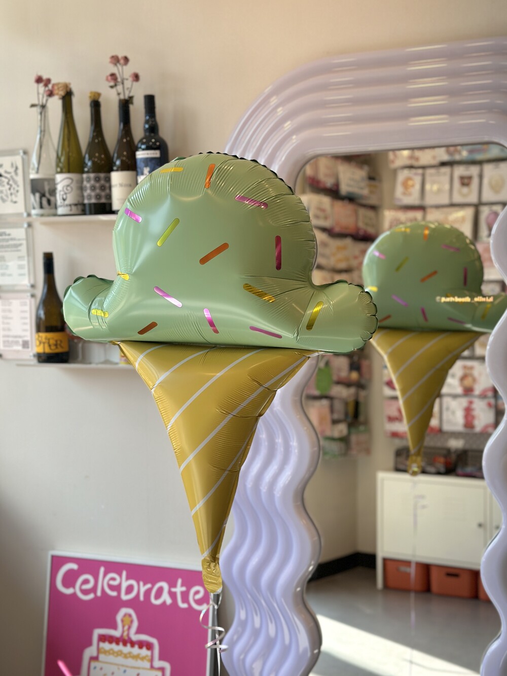 깜찍한 스프링클이 잔뜩 뿌려진 아이스크림콘 모양의 호일풍선입니다.